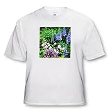 - Summer Garden With Delphiniums And Roses T-Shirt is commercial quality high resolution heat transfers garment. 5.6-ounce, 50-50 cotton-poly; taped shoulder to shoulder, coverseamed ribbed collar, double-needle sleeve and bottom hem. Toddler and infant t-shirts are 4.1-ounce. 100% ring spun combed cotton. Our image transfer produces professional matte finish with Premium Quality and Superior image resolution. Colors do not bleed and the image is sharp and crisp. Available in white, gray, blue and pink. Washing Instructions: 1. Turn Garment inside-out and machine wash in cold water. 2. Do not use Bleach or Fabric Softener. 3. Detergents with bleach additives are not recommended. 4. Tumble Dry on Warm. 5. Do not Iron. Do not Dry clean.